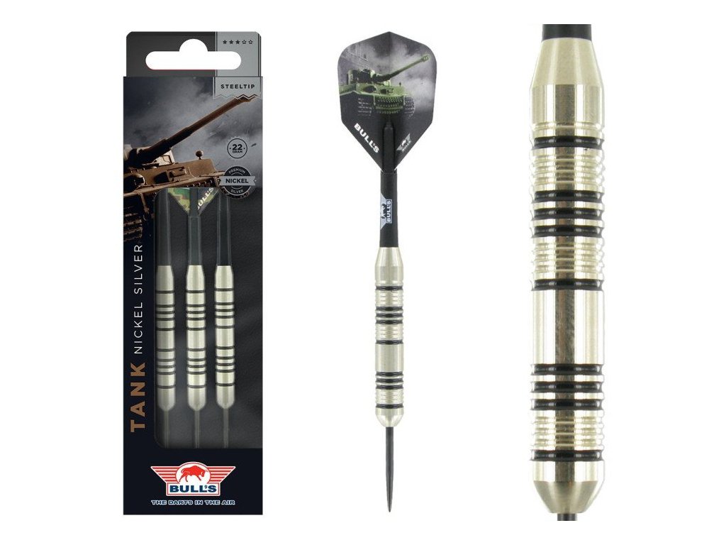Steelové šipky Bull’s Tank Nickel Silver 22 g s klasickým hladkým a přitom elegantně stříbrným provedením. Ideální volba pro začátečníky a rekreační hráče na sisalovém terči díky pohodlnému gripu a stálému letu.