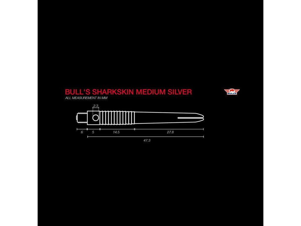 Bull’s Sharkskin Medium Silver jsou kvalitní hliníkové násadky pro šipky, navržené tak, aby poskytovaly pevné uchopení a stabilní let díky propracovanému žebrovému (tzv. sharkskin) designu.
