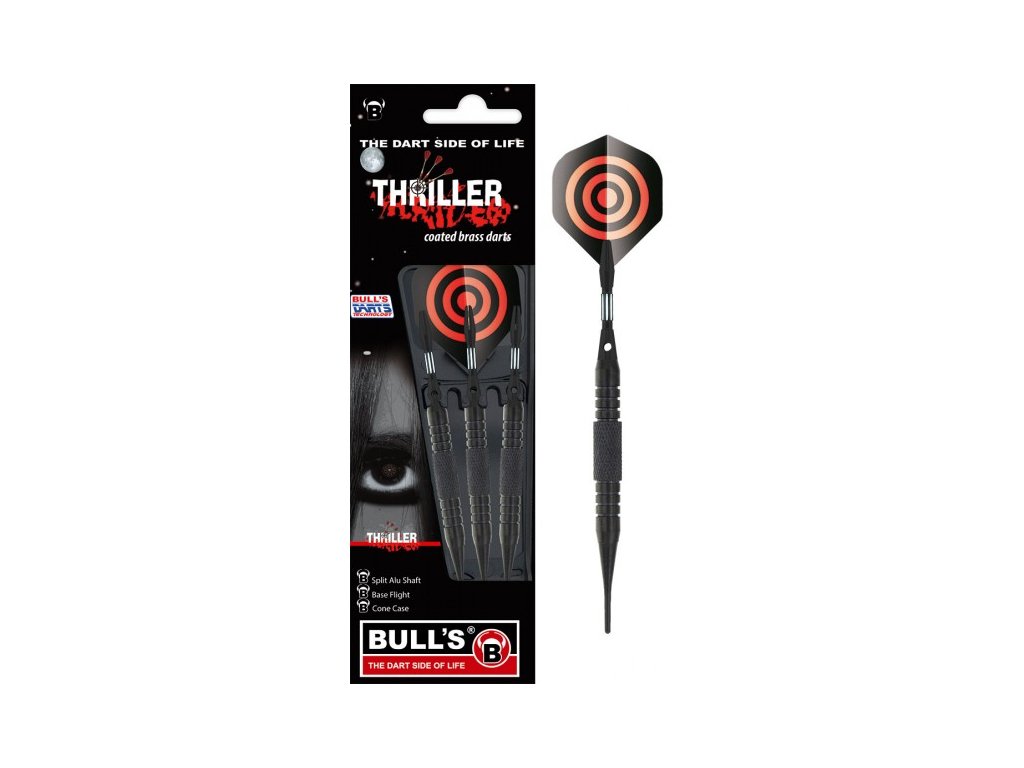 Šipky Bull’s Thriller I Softdart zaujmou moderním barevným chromováním, které dodává barrelu stylový a dynamický vzhled. Kromě designu nabízejí také výrazné drážkování, díky kterému šipka bezpečně sedí v ruce a zajišťuje jistější hod.