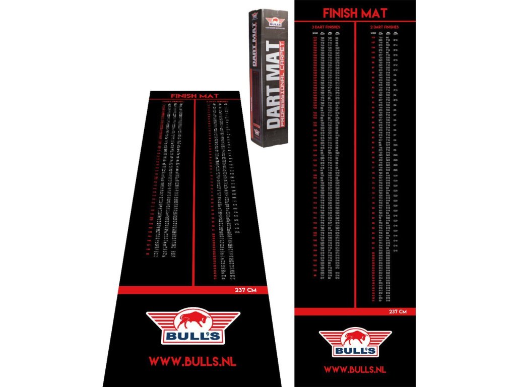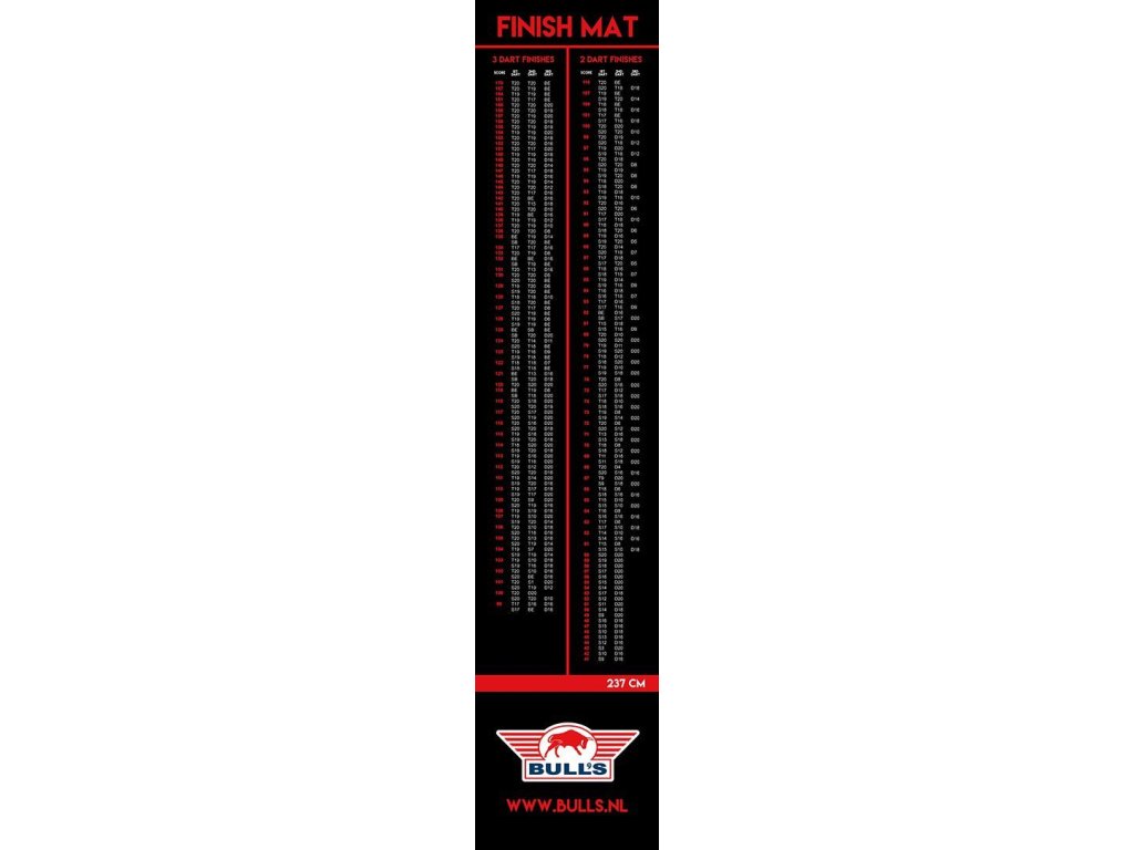 Šipkový koberec Bulls Carpet Finish Mat 300×60 cm s přehledem nejčastějších finishů přímo na ploše. Designový koberec, který zpříjemní hru a pomůže ti zlepšit zakončení při každé partii doma nebo v klubu.