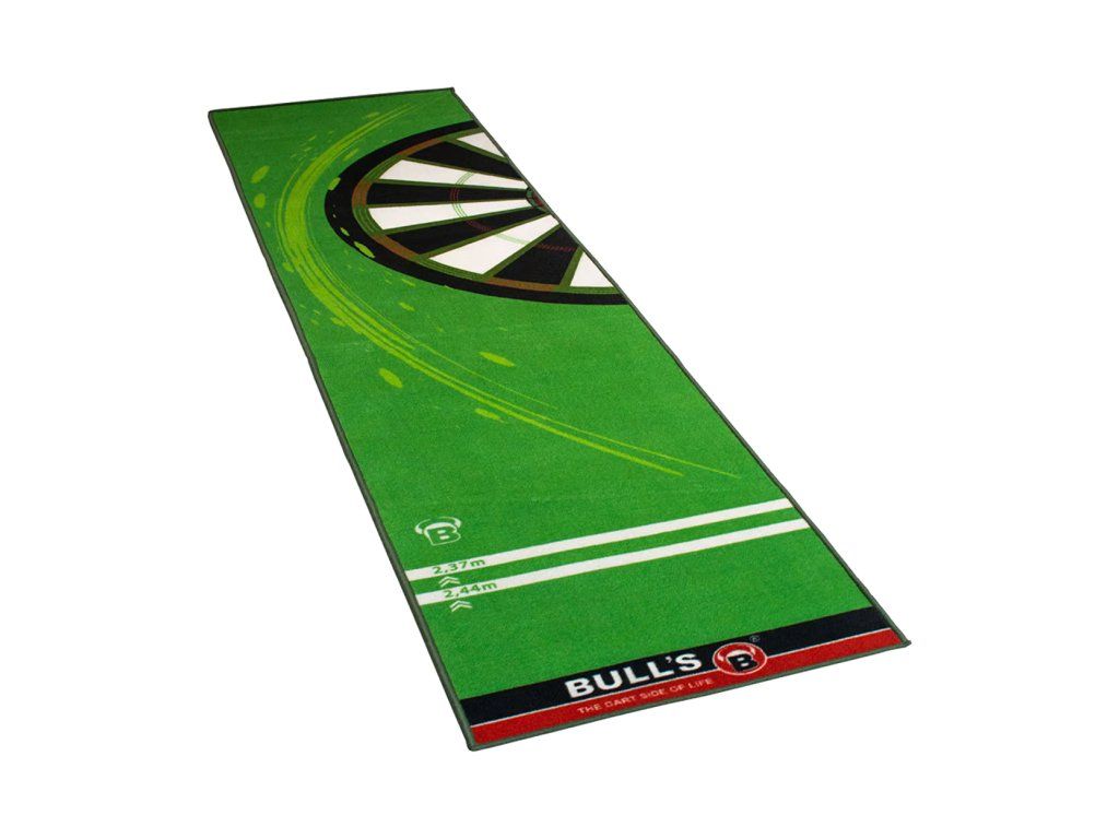 Bulls Carpet Mat 120 Green je kvalitní šipkařský koberec z 100 % polyesteru s protiskluzovou spodní stranou, který chrání podlahu i šipky a dodává hraní profesionální atmosféru.