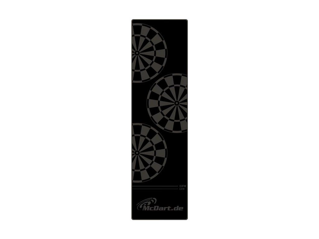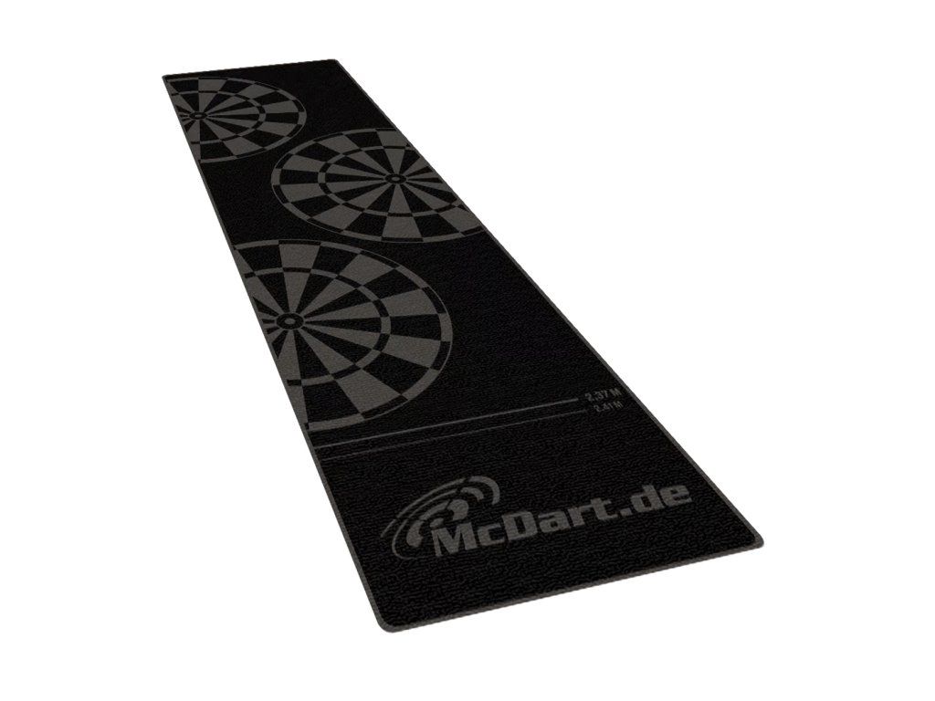 McDart Mono Dartteppich je kvalitní dartový koberec z 100 % polyesteru s protiskluzovou spodní stranou, která zajišťuje pevný a bezpečný chod při hře. Koberec je určen jako doplněk k sisalovým i elektronickým terčům a slouží k ochraně podlahy před padajícími šipkami.
