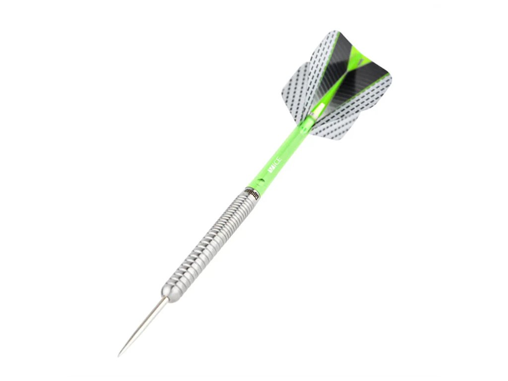 Drážkování barrelu poskytuje jistý úchop a dobrý cit při hodu. Šipky jsou určeny pro sisalové terče a klasickou steel hru.