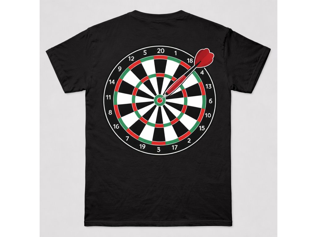 Stylové pánské/unisex tričko s potiskem na zádech šipkového terče a šipky zapíchnuté přímo do bullu potěší každého, kdo má šipky v krvi. Jednoduchý, ale výrazný motiv jasně říká: cíl je jasný – bullseye. Skvělé na turnaje, do hospody, na trénink i na běžné nošení.