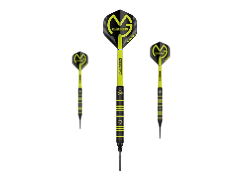 Set je dodáván s plastovými soft tipy (standardní 2BA), MvG Design nylonovými shafty a Mega Standard flighty, takže je připraven ihned k použití na elektronické terče. Atraktivní kombinace černých a zelených detailů podtrhuje sportovní styl inspirovaný Michael van Gerwenem.